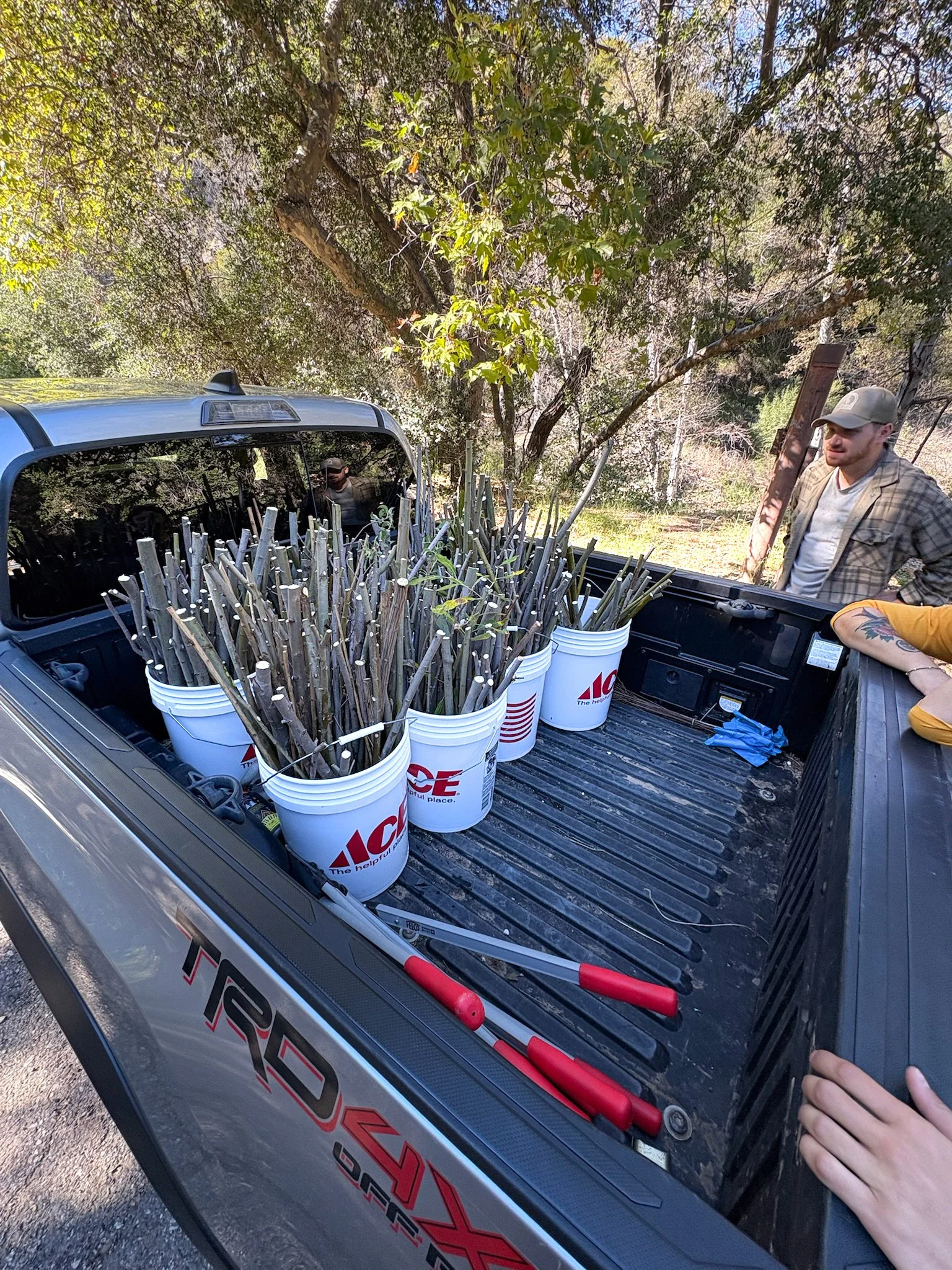 Down along San Antonio Creek and the Ventura River, our work has shifted from removal to renewal. Following invasive weed treatments, as the pressure eases, we begin restoring what belongs. Native plants are beginning to return, and we are there to give the land a helping hand.